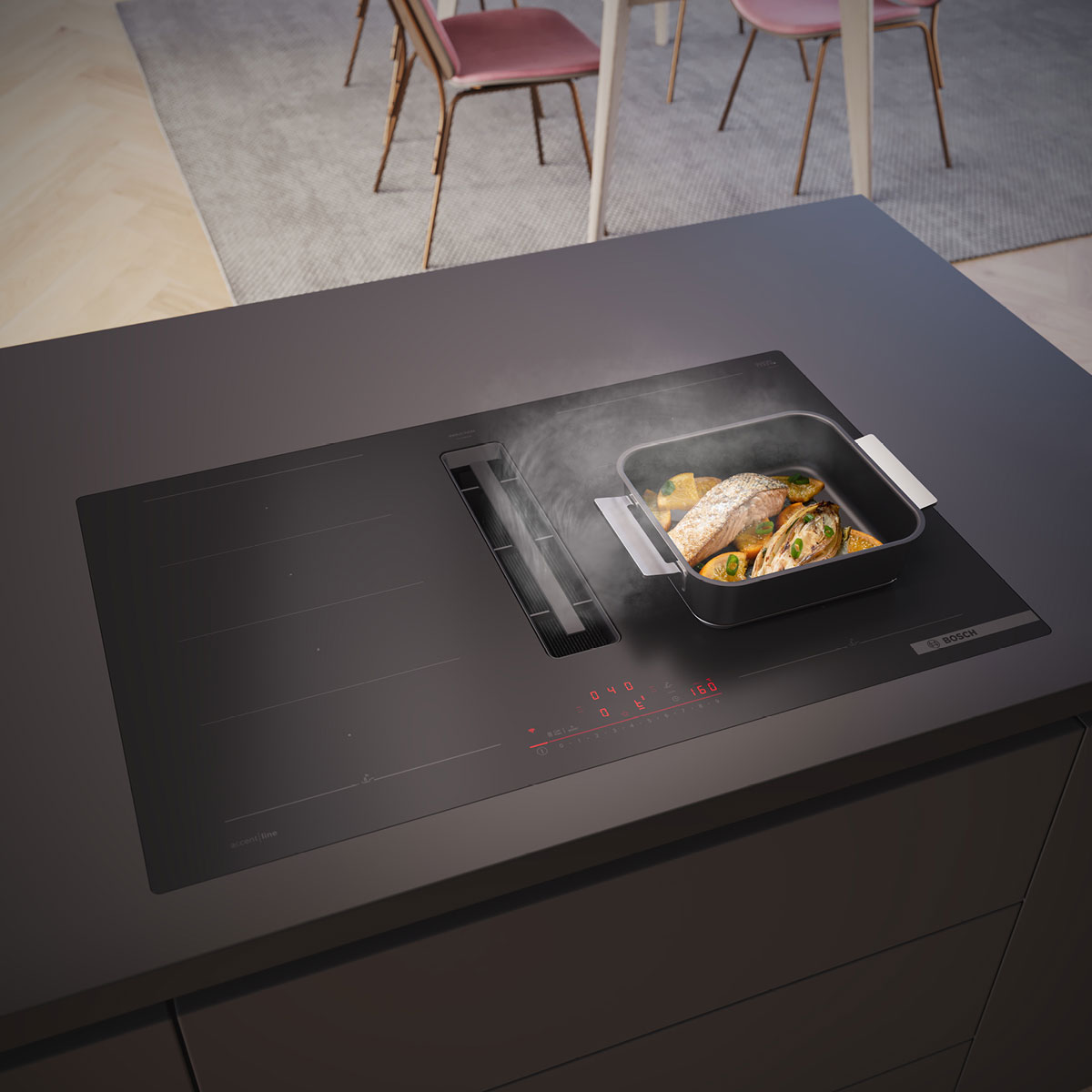 Матовият дизайн вече е факт при нашите любими готварски плотове с вграден аспиратор. Те мощно отвеждат парата и миризмите преди да са се издигнали, защото когато проверихме последно - кухня и сауна не са добро комбо в интериорния дизайн. Кадифеният завършек на Matt design е не просто красив, а запазва вида на плота ви безупречен след дълга експлоатация.