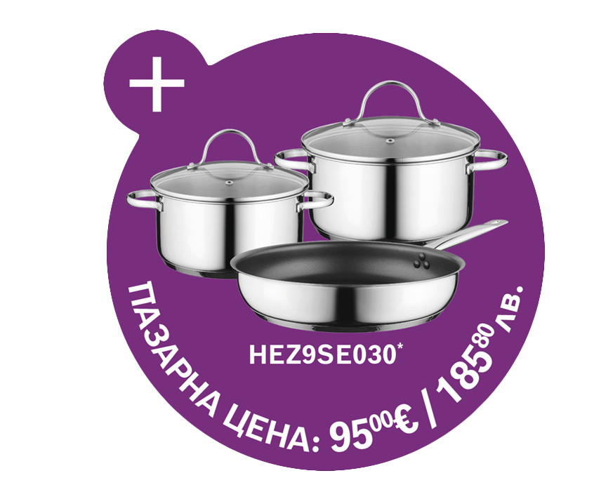 В периода 01.04. - 30.06.2026 г. закупeте заедно фурна, плот и аспиратор или фурна и плот с вграден аспиратор, и вземете 3 бр. съдове за готвене Bosch от неръждаема стомана, подходящи за индукция (повече за подаръка).